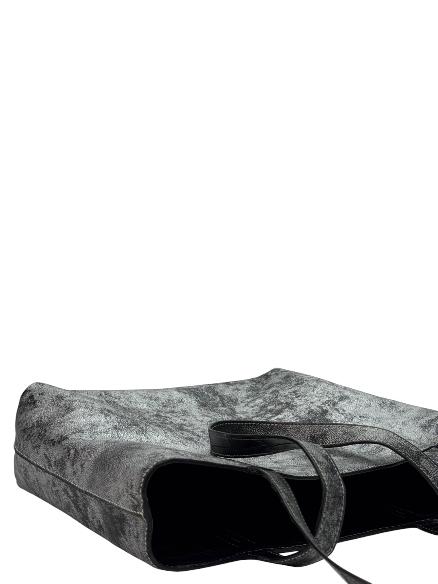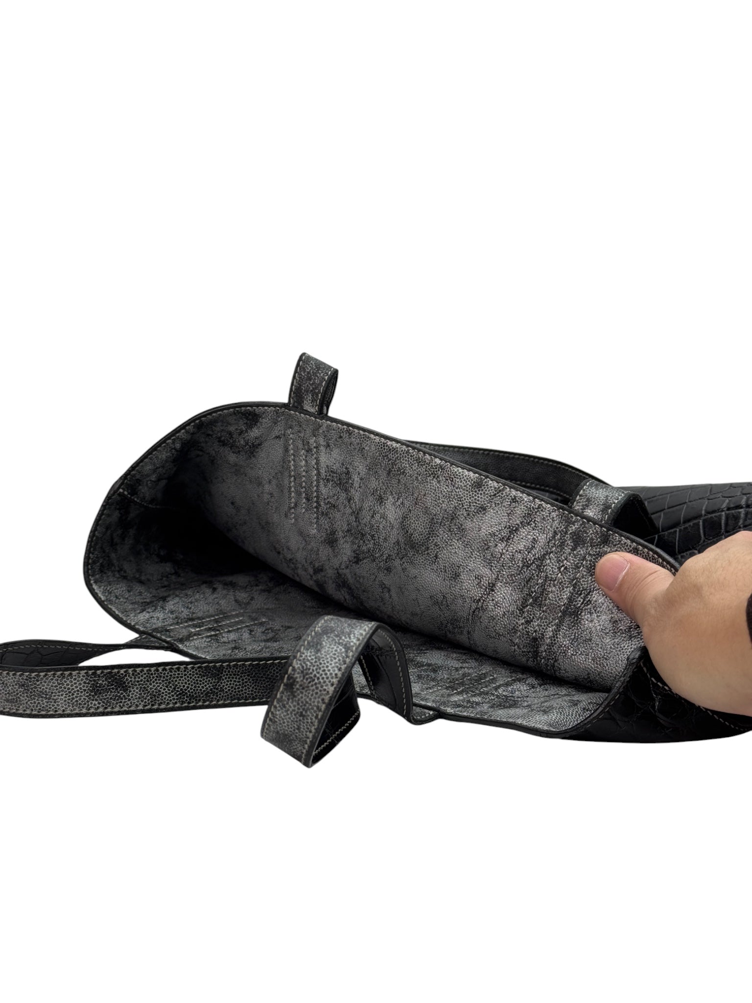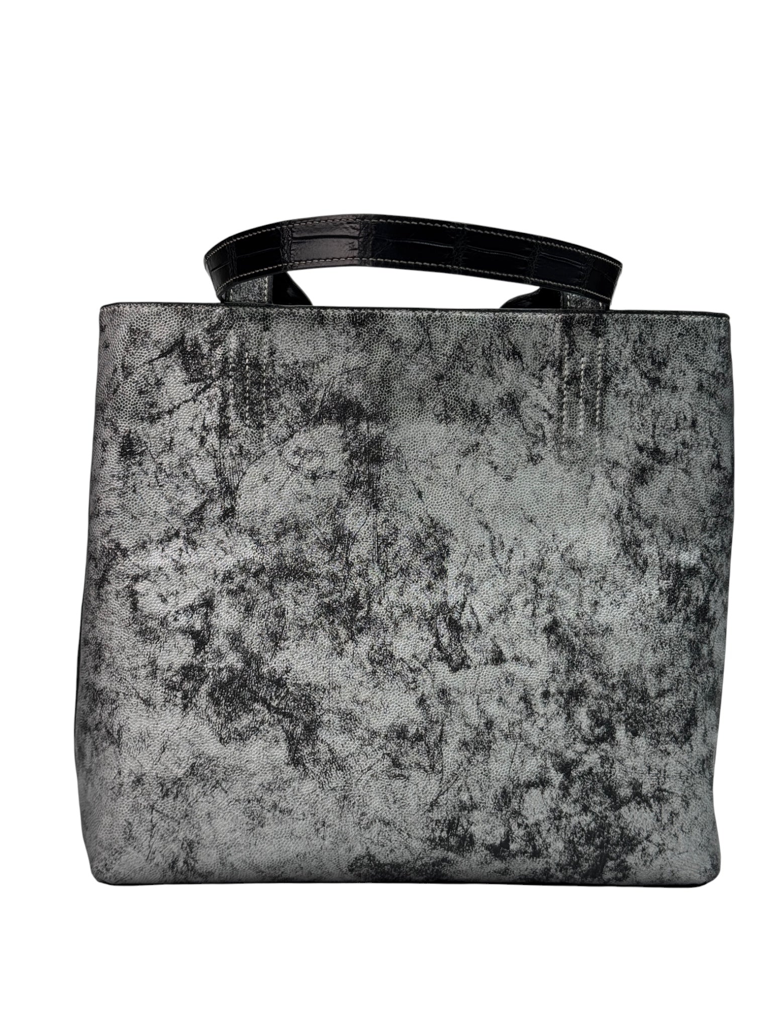 Built as a true two-sided tote, both surfaces are fully finished and functional. The bag can be used from either side, offering two distinct visual and tactile experiences within a single, unified structure.