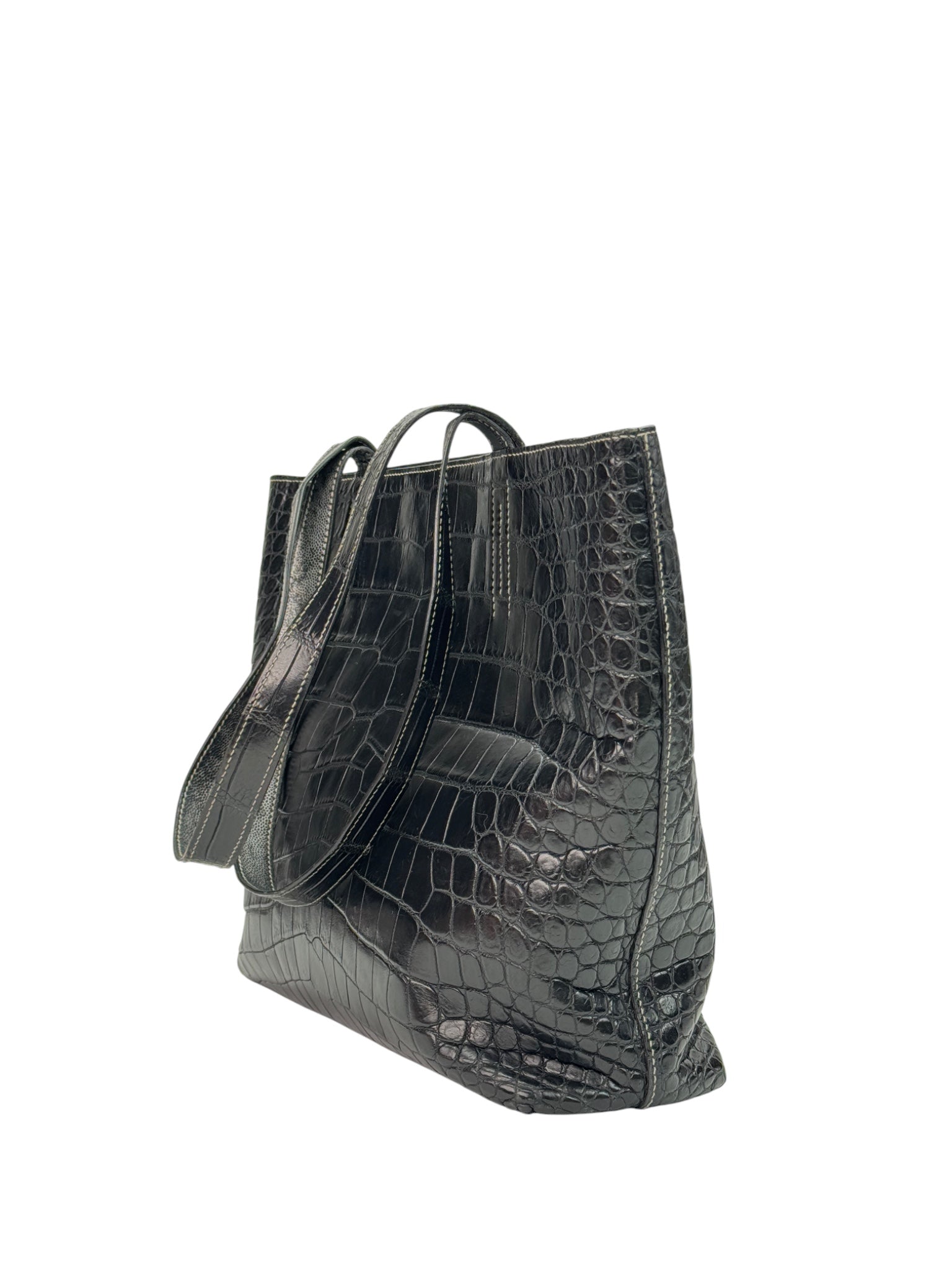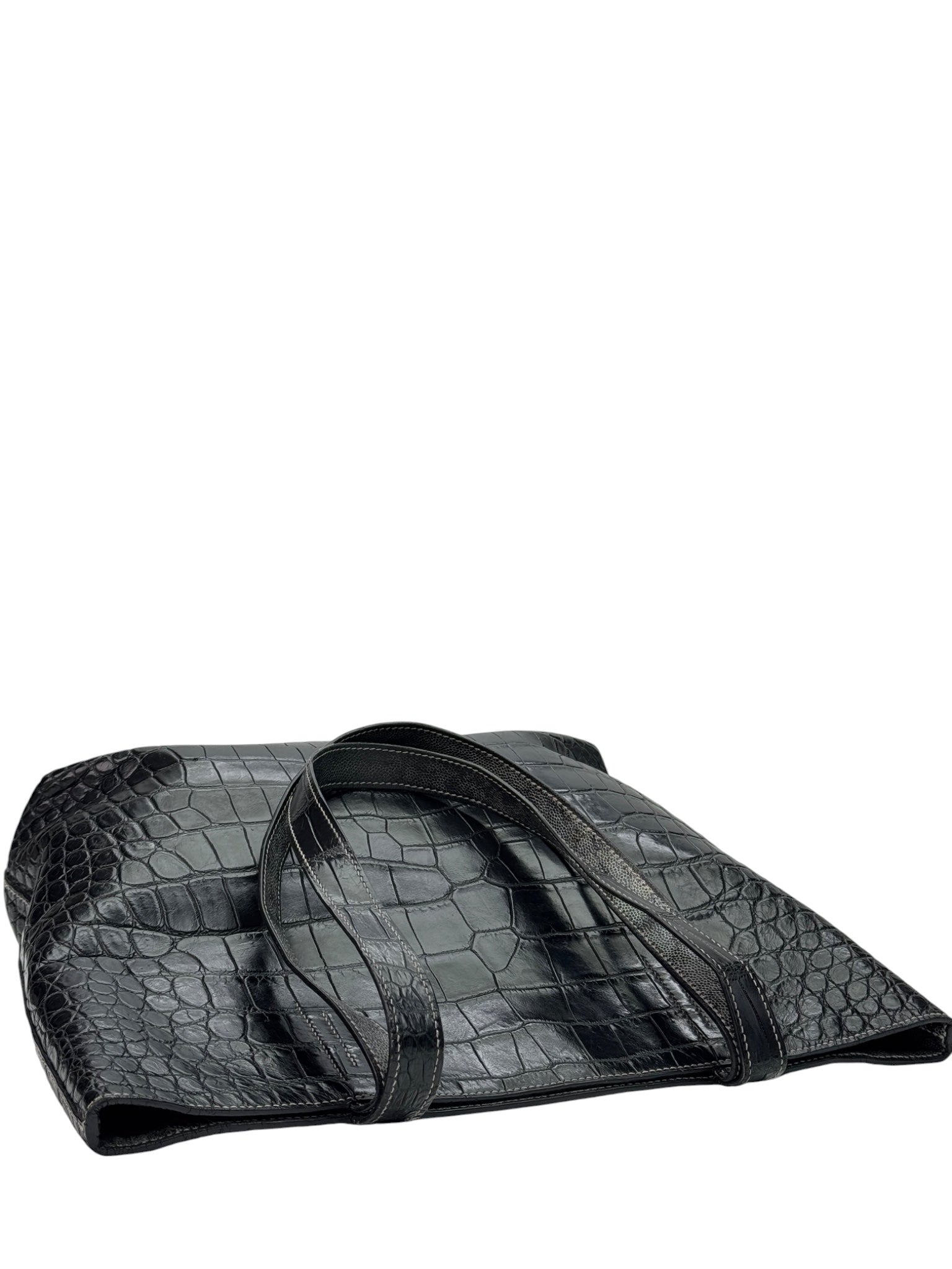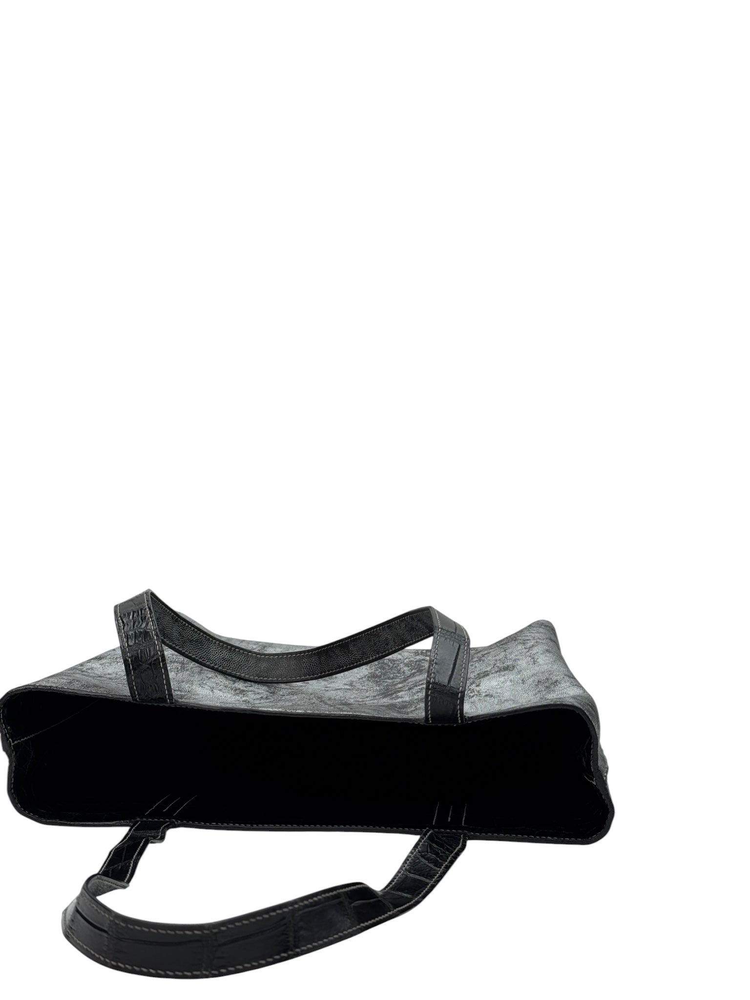 Built as a true two-sided tote, both surfaces are fully finished and functional. The bag can be used from either side, offering two distinct visual and tactile experiences within a single, unified structure.